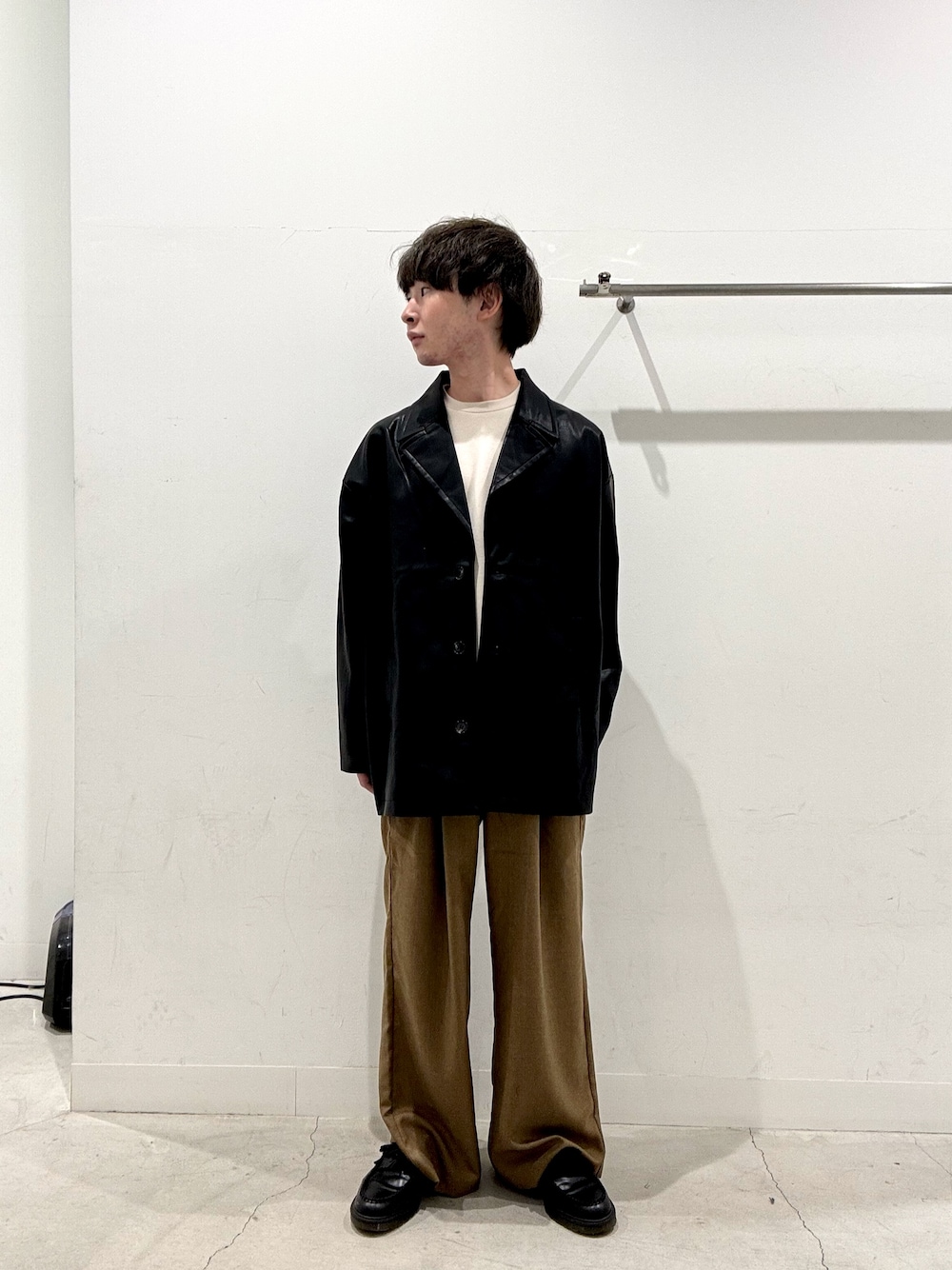 ご覧いただきありがとうございます! 大きめの作りのジャケットを羽織り、フレアワイドパンツを履いてみました! ぜひお試しください!