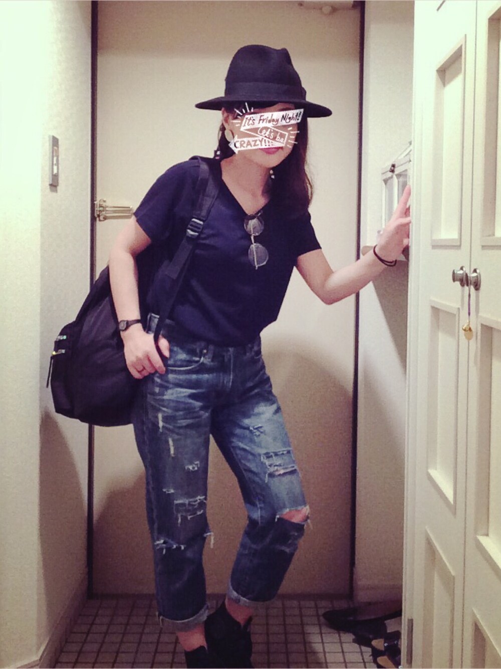 相変わらずのLEPSIMコーデ(ノ∀\*) 今日はボーイッシュなコーデにしてみ た♡ ほんで、ダメージデニムはなんと自作( *´艸`) 意外といい感じー♪