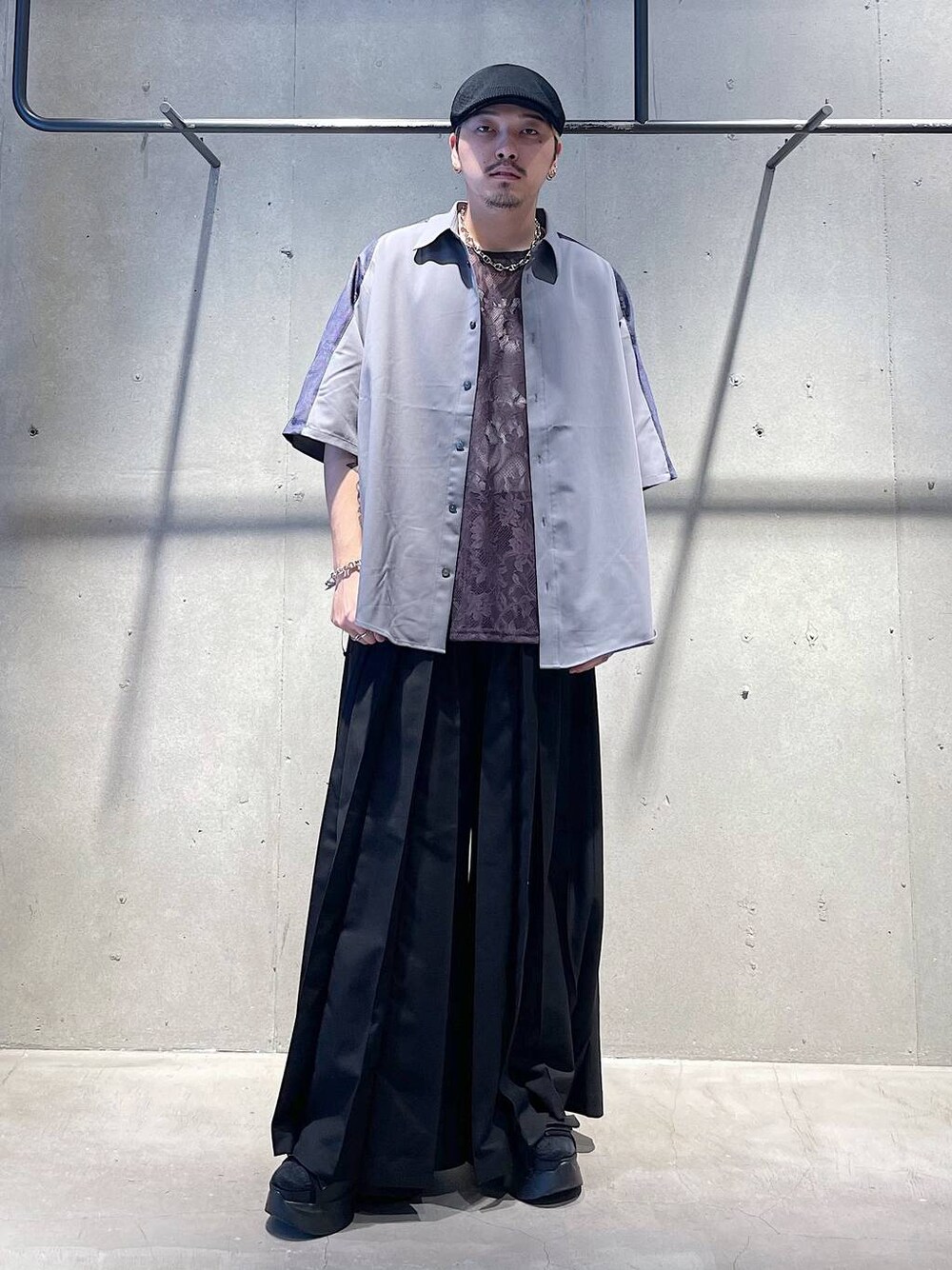 夏の個性派シャツコーデ トップスは袖ががメッシュの生地になっているオーバーサイズのシャツです! メインの生地はキレイめな印象のシャツ生地なのでキレイめもカジュアルにも使えるアイテムです! パンツは超極太のハカマ風プリーツパンツです! 裾に向かって大きく開けてるシルエットは他ではないシルエットになります! 通年履ける素材なのでどんなスタイルにも合わせれます! 着方がわからない等あればDMや HARE渋谷店でお待ちしてます! Instagram→