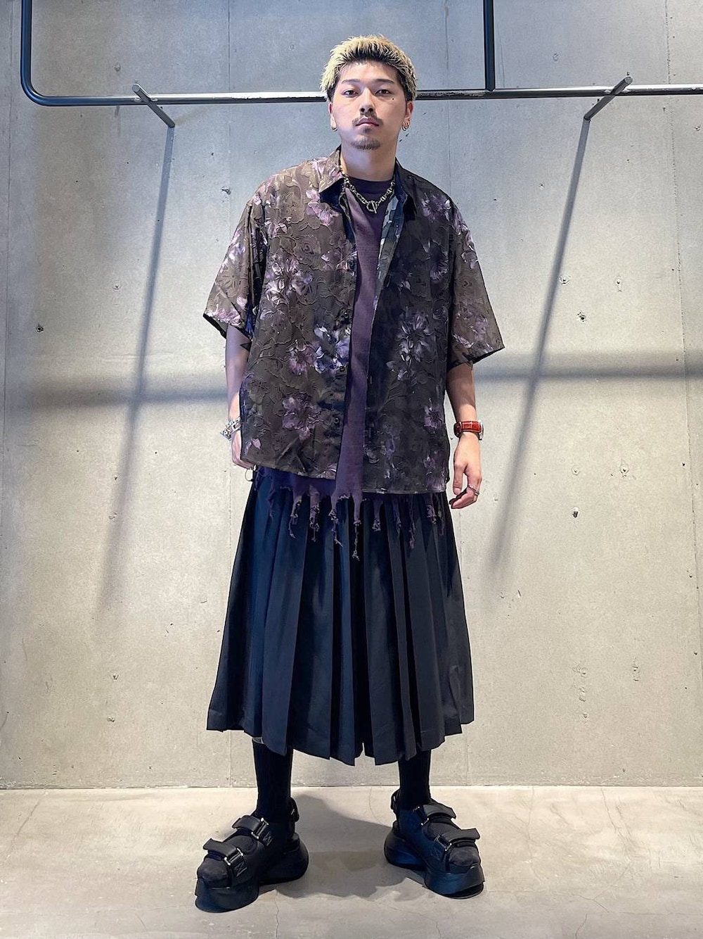 夏の個性派キレイめコーデ トップスはシアー素材の柄シャツです! シアーはトレンドな素材感で夏にも着れるアイテムです! 透けすぎす程よく透け感を楽しめるのでキレイめもカジュアルにも使えるアイテムです! パンツは超極太のハカマ風プリーツパンツです! 裾に向かって大きく開けてるシルエットは他ではないシルエットになります! 通年履ける素材なのでどんなスタイルにも合わせれます! 着方がわからない等あればDMや HARE渋谷店でお待ちしてます! Instagram→