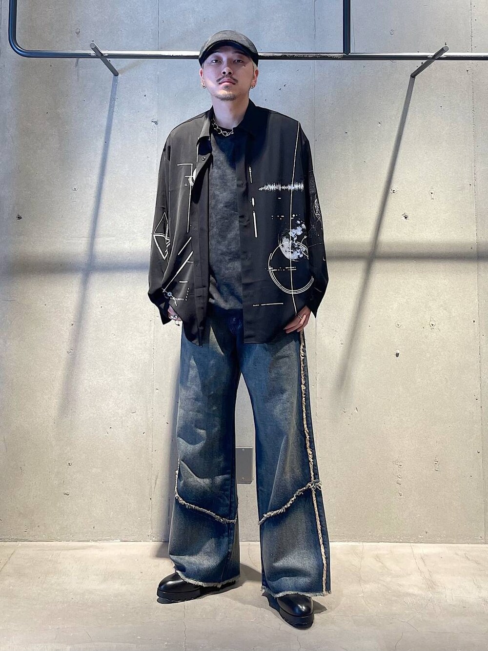 秋のキレイめカジュアルコーデ トップスはペンで書かれたようなデザインが施されているオーバーサイズのシャツです! とても柔らかい生地でとても着やすく全面にプリントされていますがシンプルに使いやすいアイテムです! パンツはデニム素材でワイドなシルエットになっているデニムパンツです! フリンジのデザインがシンプルながらも他のと差別化を作れて色々なスタイリングに合うのでオススメです! 着方がわからない等あればDMや HARE渋谷店でお待ちしてます! Instagram→