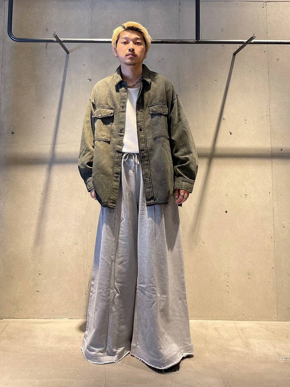 秋のカジュアルコーデ トップスはオーバーサイズのデニムシャツです! しっかりした生地なので存在感があります! 秋冬のスタイリングのどんなインナーにも合わせれるのでオススメです! パンツは超極太なワイドシルエットのスウェットパンツです! DABOシリーズのシルエットなのでキレイめな印象でも使えるパンツになっていて今までのスウェットパンツの概念をぶっ壊すアイテムになっています! 着方がわからない等あればDMや HARE渋谷店でお待ちしてます! Instagram→