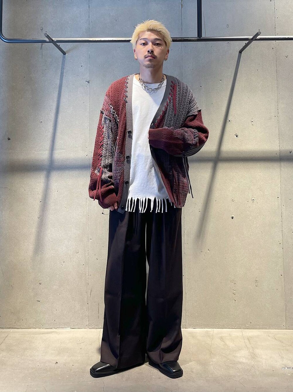 秋の大人カーディガンコーデ トップスはキリカエのデザインが特徴的なオーバーサイズのカーディガンです! キリカエになっている生地は織り方を変えた生地にしていてどこから見ても見え方が変わるアイテムになっています! ステッチのデザインのワンアクセントになっています! パンツはベーシックなシルエットのワイドスラックスです! 腰回りに2タックいれてスッキリして見えるのとセンタープレスがあることで縦のラインが強調されよりスタイル良く見えるような印象のパンツです! 生地もシーズンレスで履けるので一本持ってて間違いないアイテムです! 着方がわからない等あればDMや HARE渋谷店でお待ちしてます! Instagram→
