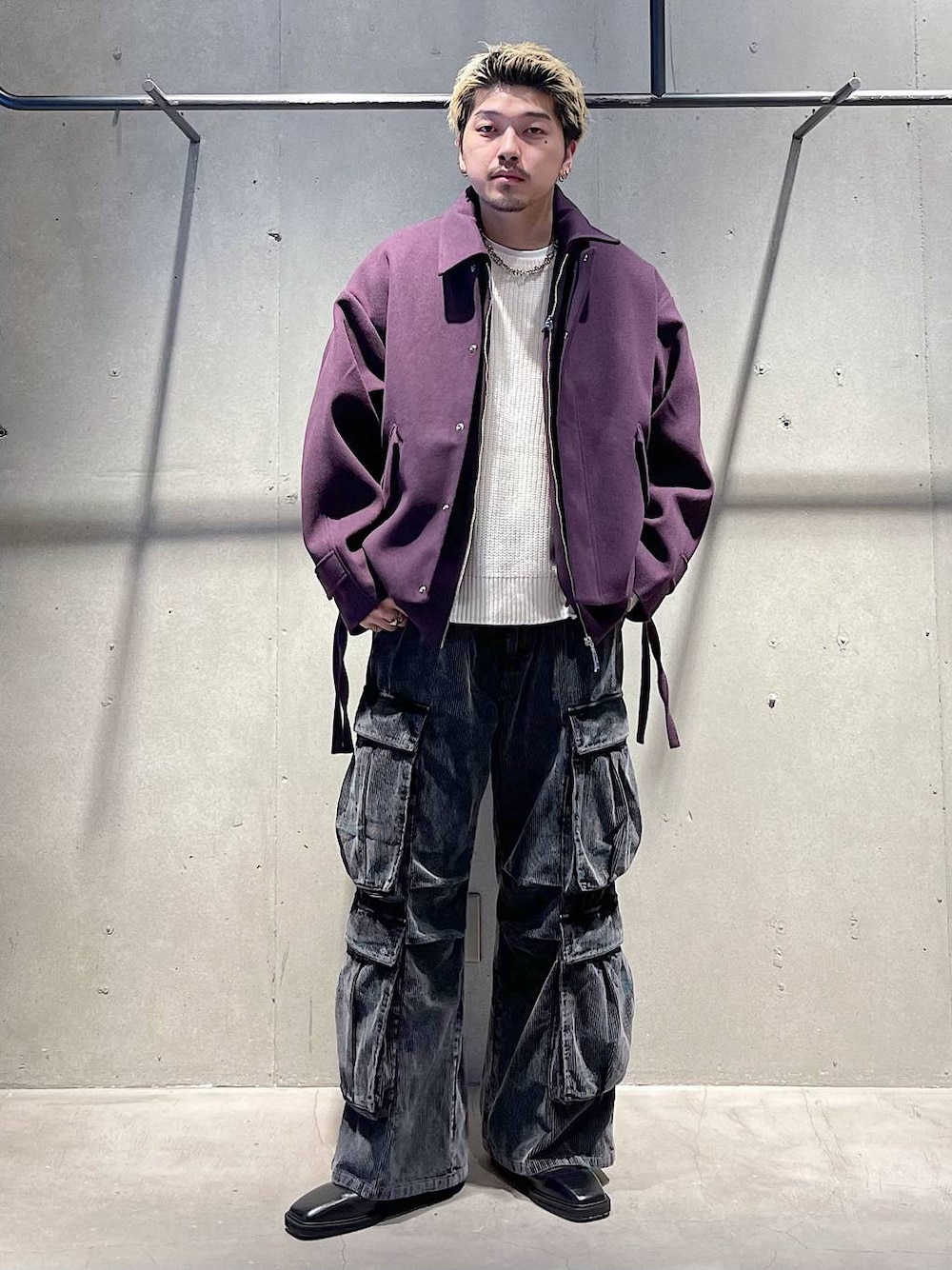 冬のカジュアルスタイル トップスはステッチのデザインが施してあるオーバーサイズのニットです! ベーシックなニットの生地に程よく散りばめられラメが良いアクセントになっています! アウターはWT生地のオーバーサイズのブルゾンです! 一枚でもレイヤードされているデザインのアイテムなので冬のアウターとしてとても使えるアイテムです! パンツはコーデュロイの生地になってるパンツです! 大きなポケットが四つついていて今っぽいデザインになっています!かなりカジュアルなアイテムなのでふーやニットに合わせるのがオススメです! 着方がわからない等あればDMや HARE渋谷店でお待ちしてます! Instagram→