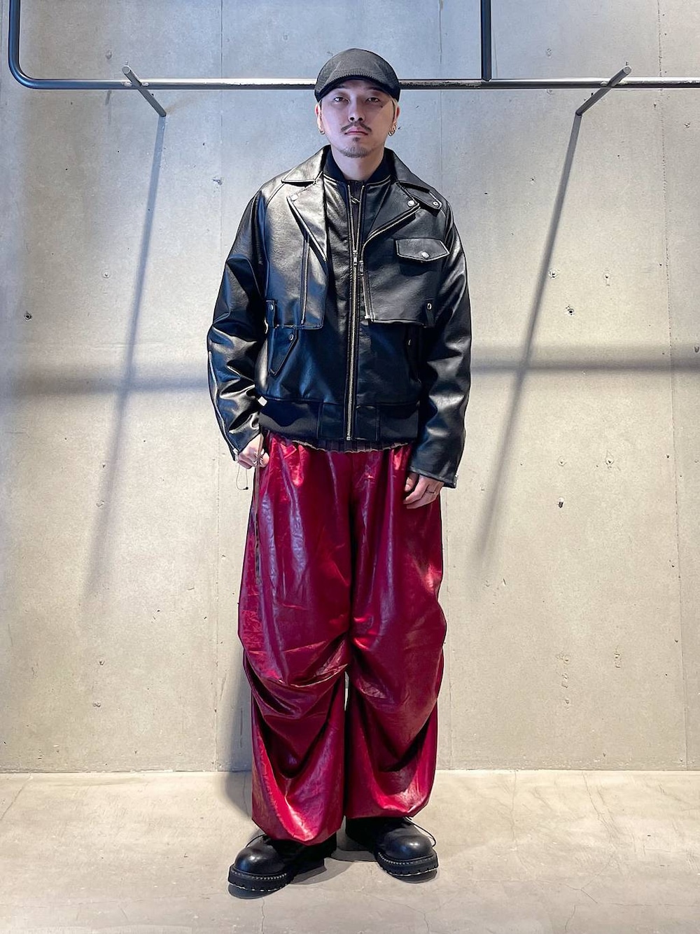 冬の個性派カジュアルコーデ アウターはショート丈のライダースとMA-1がドッキングされているブルゾンです! セパレート仕様で別々で使えますしスッキリしたシルエットなので今っぽいAラインシルエットのスタイリングにも使えます! 冬はアウターonアウターもオススメです! パンツは超極太のワイドパンツです! 何とも言えない光沢感のある生地が他と差別化できます! 裾を絞ったりもできるので色々なスタイリングに使えるアイテムになっています! 着方がわからない等あればDMや HARE渋谷店でお待ちしてます! Instagram→