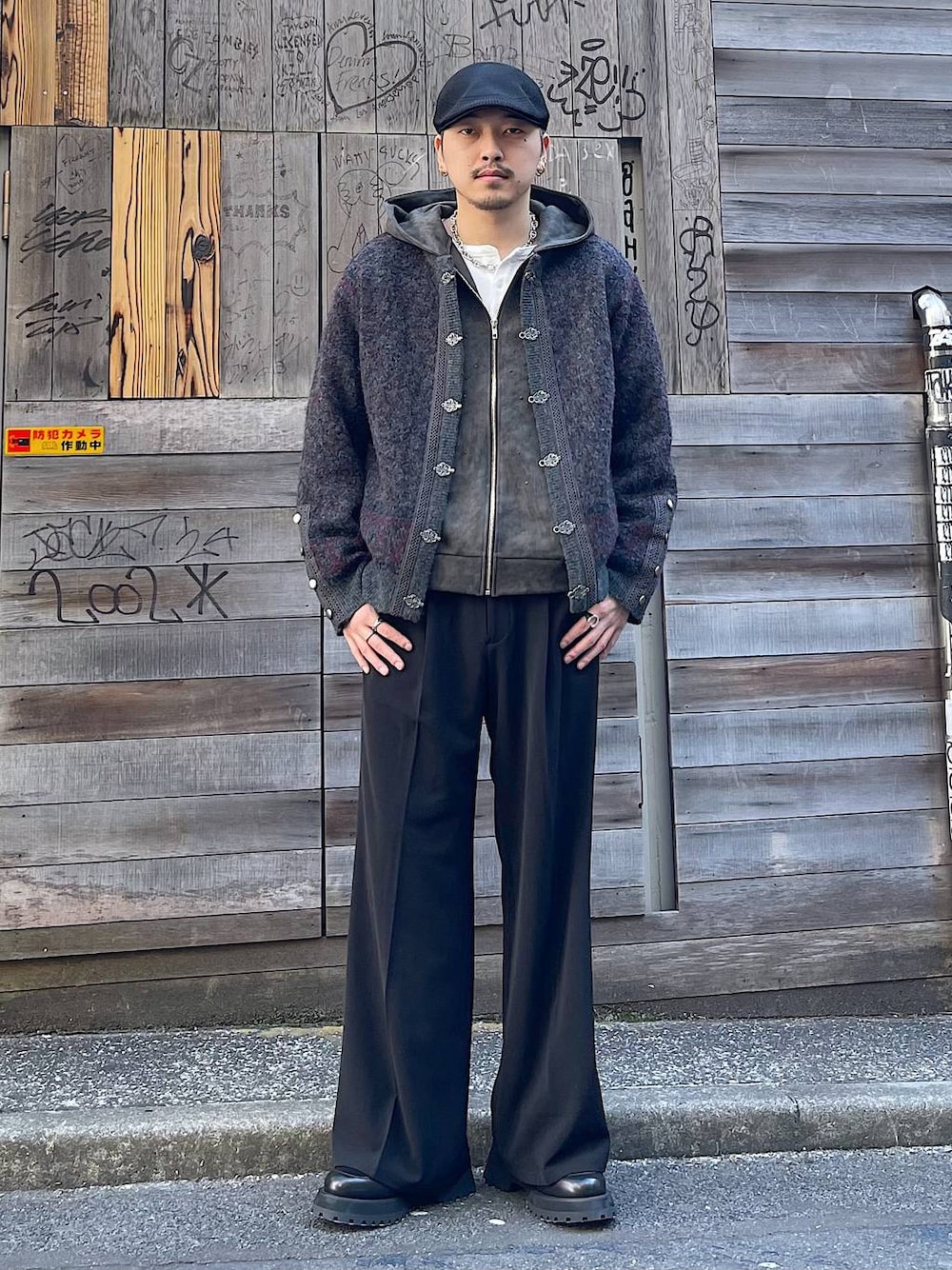 春のキレイめカジュアルコーデ 少し癖のある柄のカーディガンをベースにインナーはシンプルなジップパーカーでパンツは万能なワイドスラックスを合わせました。 着方がわからない等あればDMや HARE渋谷店でお待ちしてます! Instagram→
