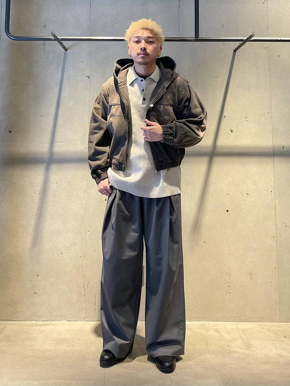 春の大人カジュアルコーデ デニムブルゾン一枚だとカジュアルな印象が強いのできれいめなスラックスと合わせることで大人っぽい印象でスタイリングすることができます!