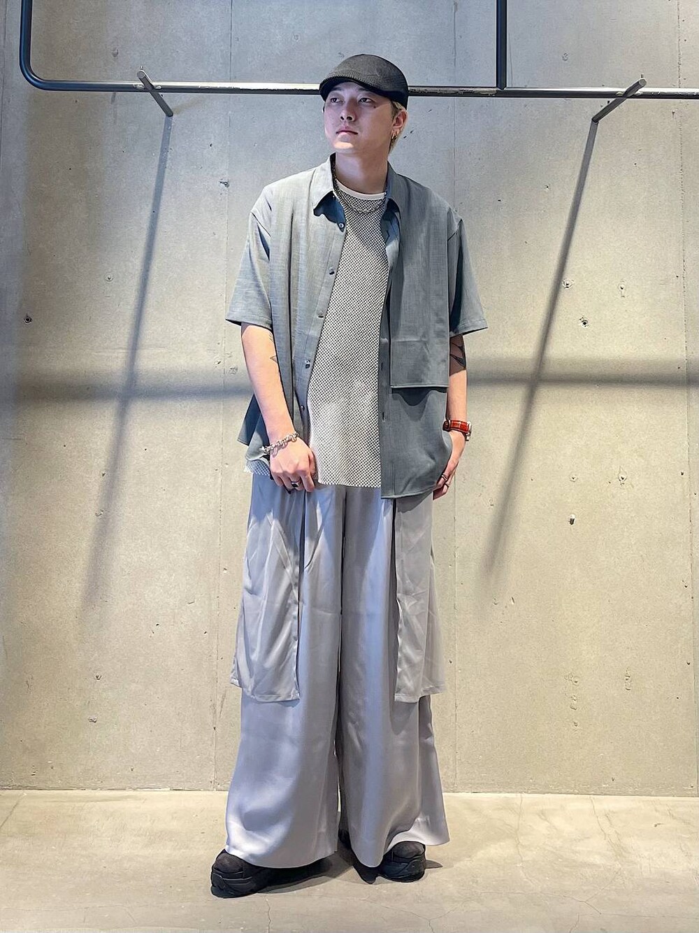 夏の個性派きれいめコーデ 全体的に明るめな色味で合わせて透け感がポイントのスタイリングになっています! トップスはメッシュのインナーでパンツはシアーの素材がレイヤードされているワイドのパンツ 夏はシンプルになりがちなので少しデザインが強めなアイテムを合わせるのがオススメです!