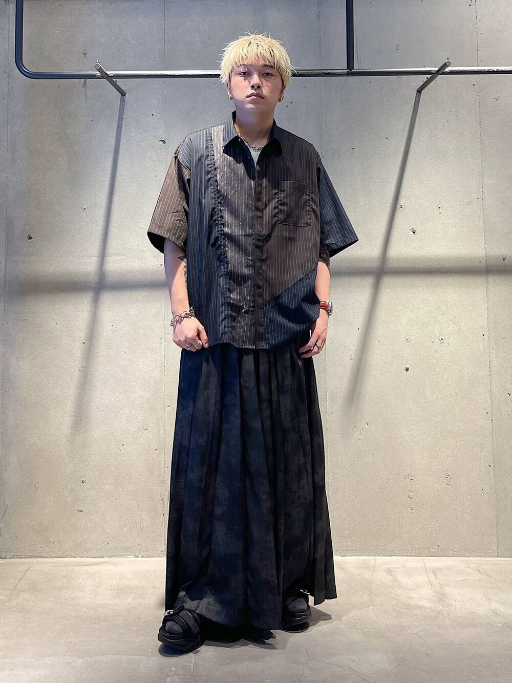 夏のきれいめモードコーデ オーバーサイズのシャツにYOSEシリーズのワイドパンツはとても相性がいいです! ストライプ柄も良いワンアクセントになってオシャレなスタイリングになります!