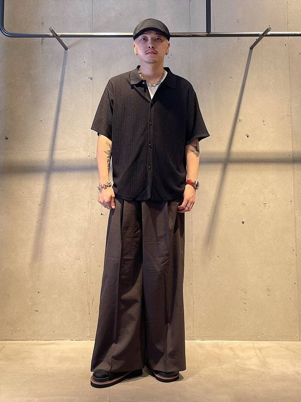 夏の大人カジュアルコーデ あまり他と被らないニットシャツのコーディネートです! スラックスと合わせてきれいめカジュアルな印象でコーディネートできます!