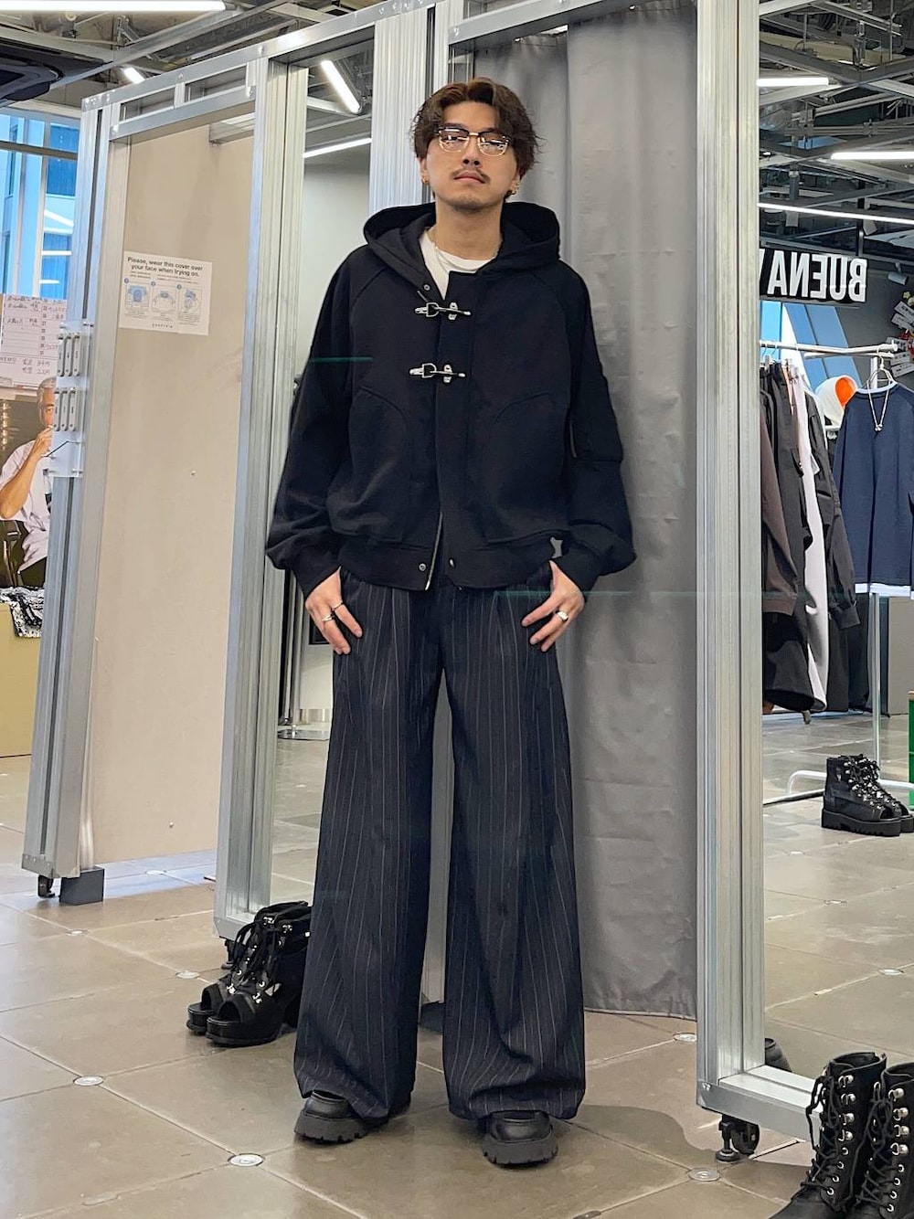 春の大人カジュアルスタイル ジップパーカーは合わせた方によっては子供っぽくカジュアルすぎる印象になってしまいがちなアイテムですがトレンドのファイヤーマンバックルのデザインやダブルジップ仕様になっているので他と差別化できます! パンツをスラックスにすることで大人っぽい印象になるのでオススメです!