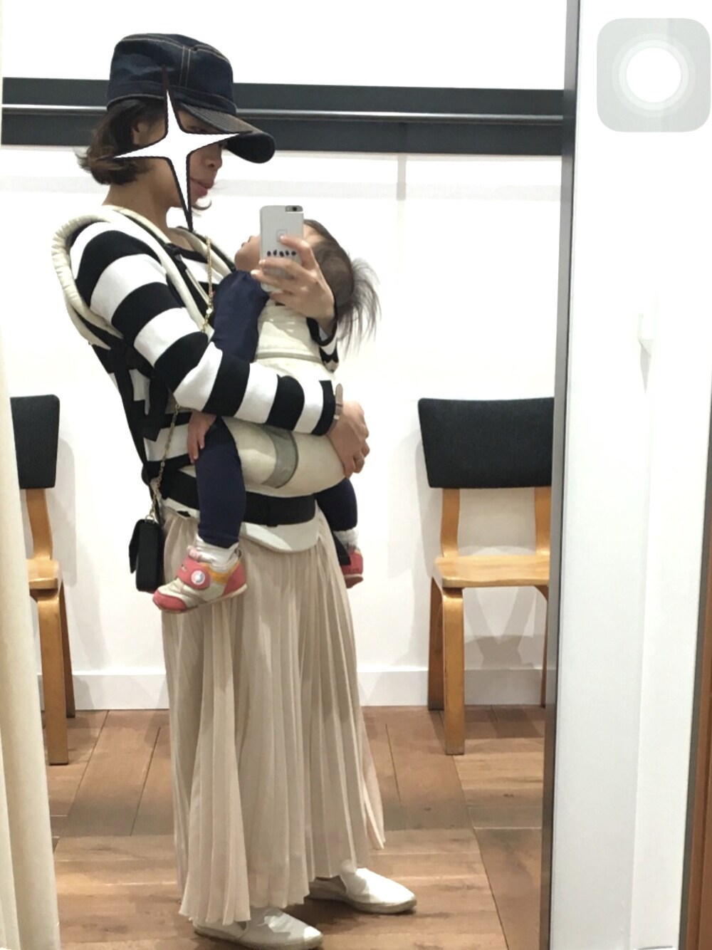 第3🍡だけ連れて、夫さんと買い物 アーバンリサーチで試着待ち 今やなかなか見かけないmanducaの抱っこ紐 第1🍡の時は使ってる人、わりと居たんだけどなぁ 久々使ったらなんか大きくなったな〜と実感 1歳8ヶ月 寝たらぐにゃんてなる あ〜ベレー帽ほしいなあ