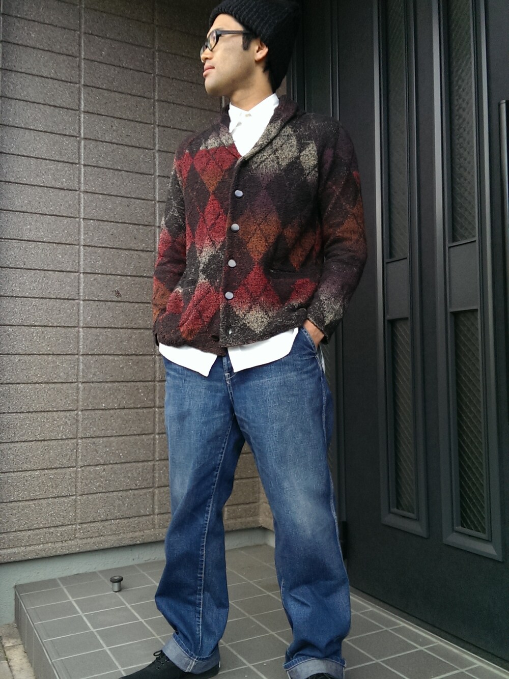 またしても、Episode no.,を使ってみました。 アーガイルの色がとても気に入っている一着です(^^) 細みのパンツでいくよりも、ゆったりしたサイズ感で合わせるのが楽でいい感じ♪
