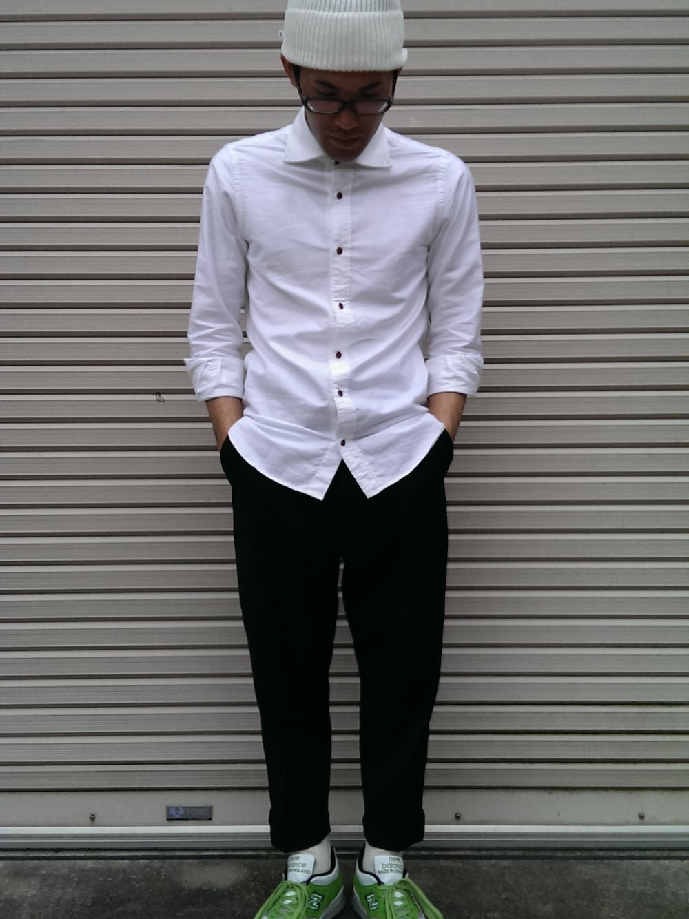 今日一日いろんな人から言われたのが「白い!」の一言。 間違いないです(笑) 自分でも写真を見て「白っ!」と言ってしまうくらい(^_^;) ニット帽はこれから暑くなることを考え、清涼感のあるリネン素材のものをチョイス。 価格もリーズナブルなのでお勧め♪ しかし、何と言っても今回の注目はスニーカー! …のはずだったんです。 まさかの見切れてる…。 しょんぼりです…。 new balanceの1500で、爽やかなグリーンに一目惚れ♪ 履き心地も抜群でさすがnew balanceと言った感じです♪ 前回ものせたiroquoisのパンツと合わせて、アクティブさのある爽やかなスタイルにしてみました(^^)