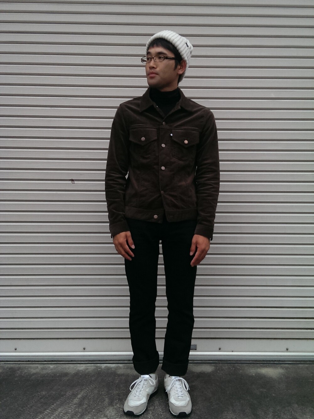 久しぶりに投稿を♪ ひとめぼれでコーデュロイジャケットを買ったので、それに合わせてなるべくパンツとトップスを落ち着いた色味に。 頭と足に白を持ってきてみました。 逆光だったのか、思った以上に写りが暗くてわかりづらいんですが、ジャケットとはカーキです。コーデュロイの程よい光沢感と、ストレッチ素材、それからボタンやラベル部分にスマイルが施されているのがとてもgoodでした♪