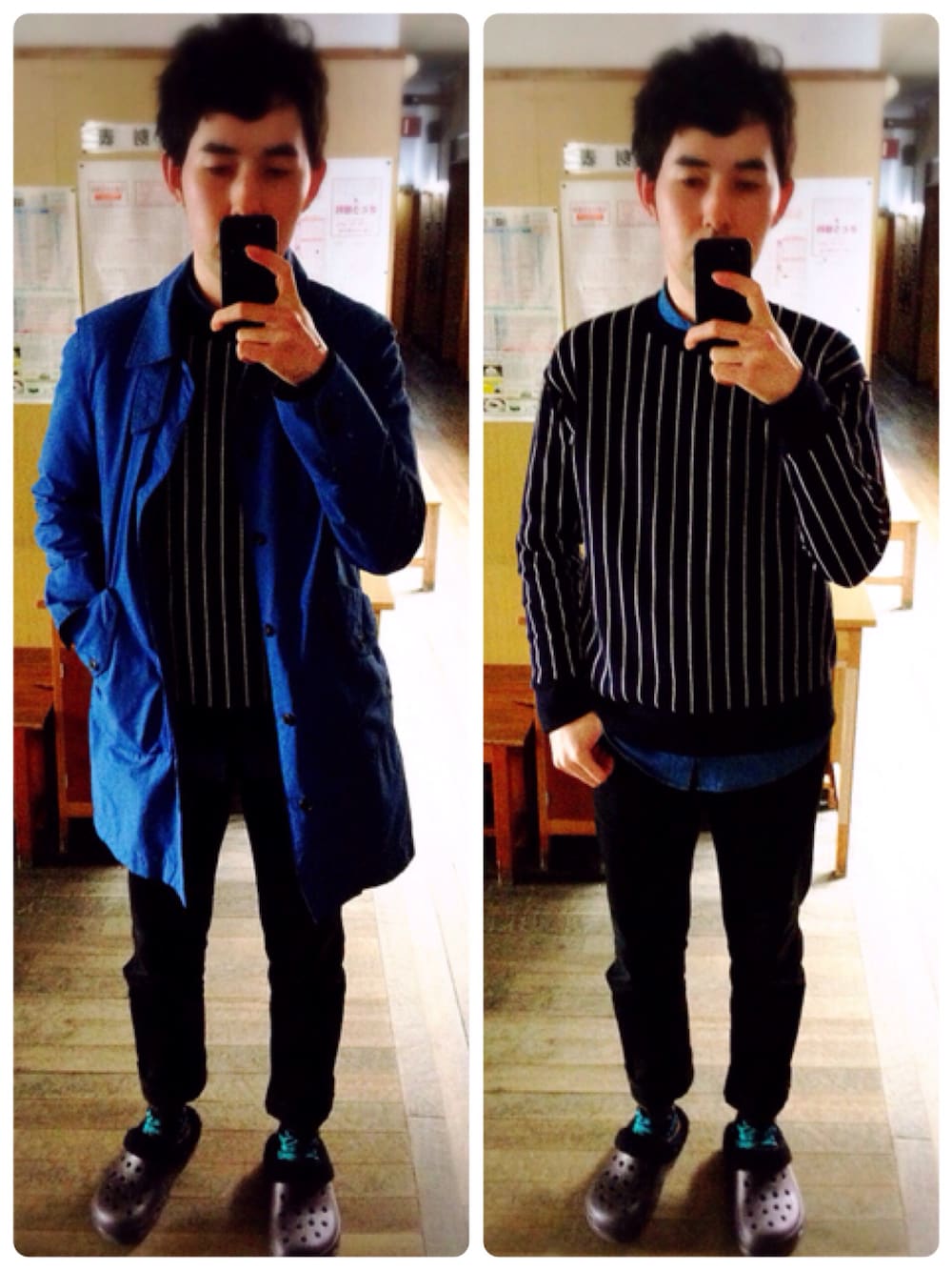 今日は気温も上がったので、春色ステンカラーコートで☆アウター、ボトムスがシンプルな分、インナーをストライプ柄にしてインパクトを出しました!ちなみにこのスウェットは催事で半額の2,000円でゲット☆ZARAのソックスは頂き物です♪♪