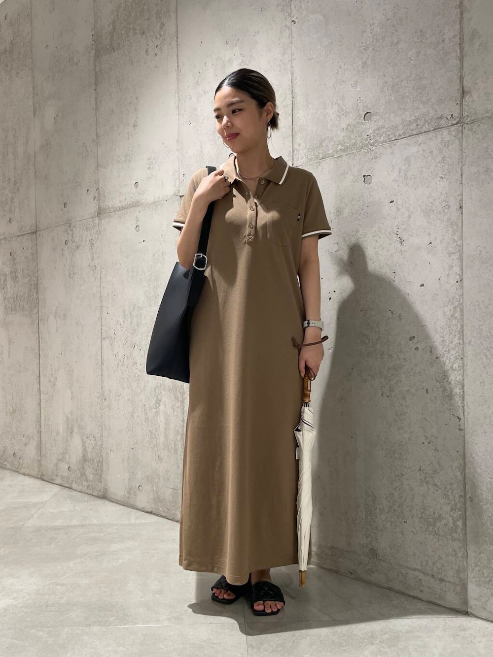 カワノのショルダーバッグ「ワンハンドルバケツショルダーバッグ」を使ったコーディネート