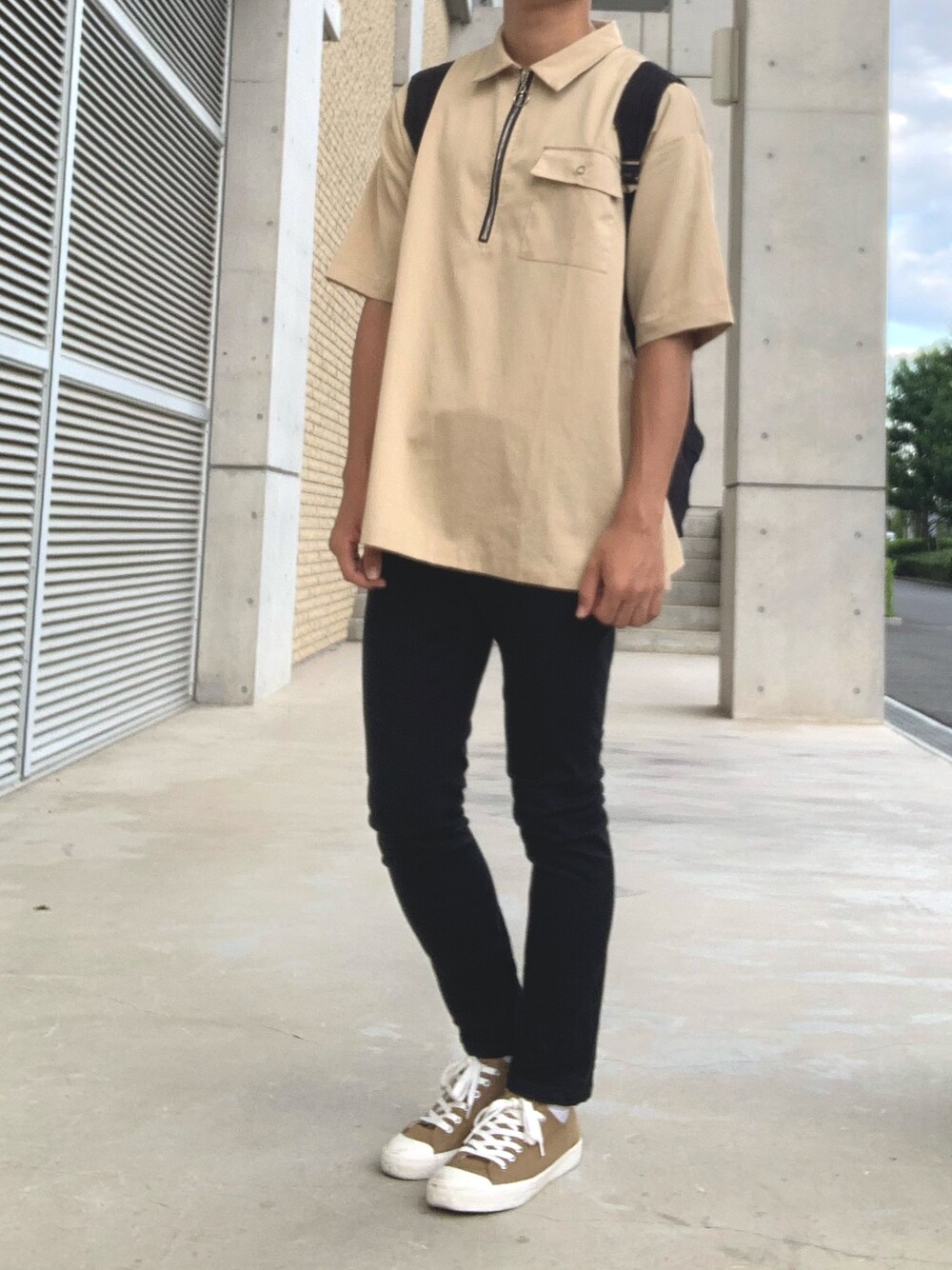こんにちは!😄 なんでみんなが秋コーデ投稿するなか、まだ半袖なんですか?って質問ですか? 気温30度なんて予報だされたら大学にはこんな格好でしか行けません😭