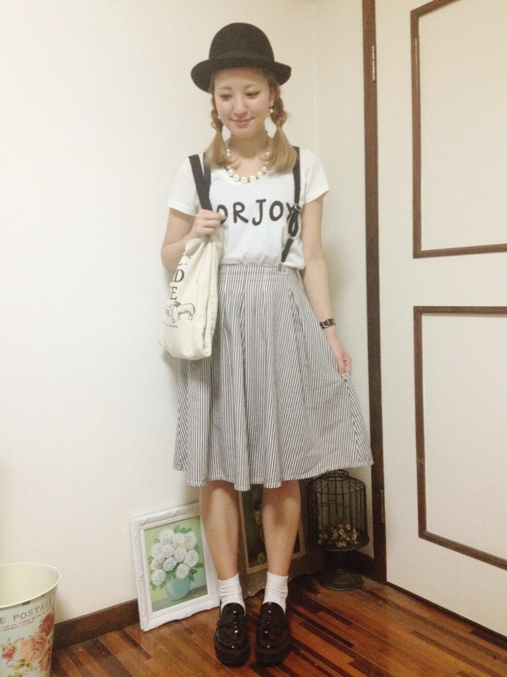 トップス:gu スカート:オンザカウチ まだまだ暑い日わ続いてますが、気分わもう秋気分♪ 秋物ぢゃないけど小物で秋っぽさと色味をモノトーンでまとめてみました*