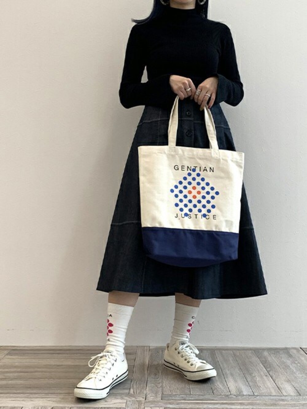 コヤマのトートバッグ「【BURNET】DOT FLOWER トート」を使ったコーディネート