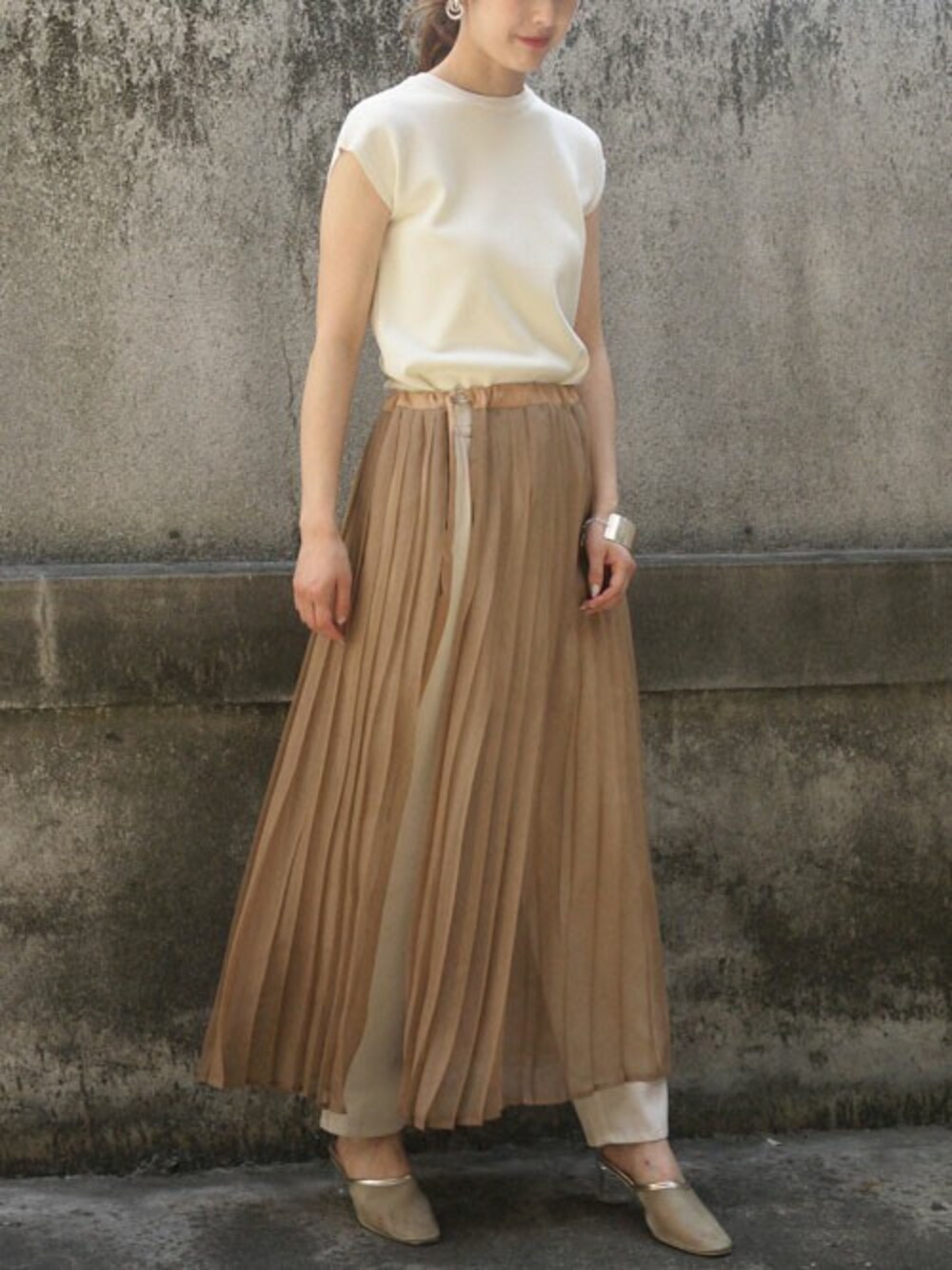 レイヤードにぴったりのシアープリーツスカート いつものスタイリングに取り入れるだけで完成!