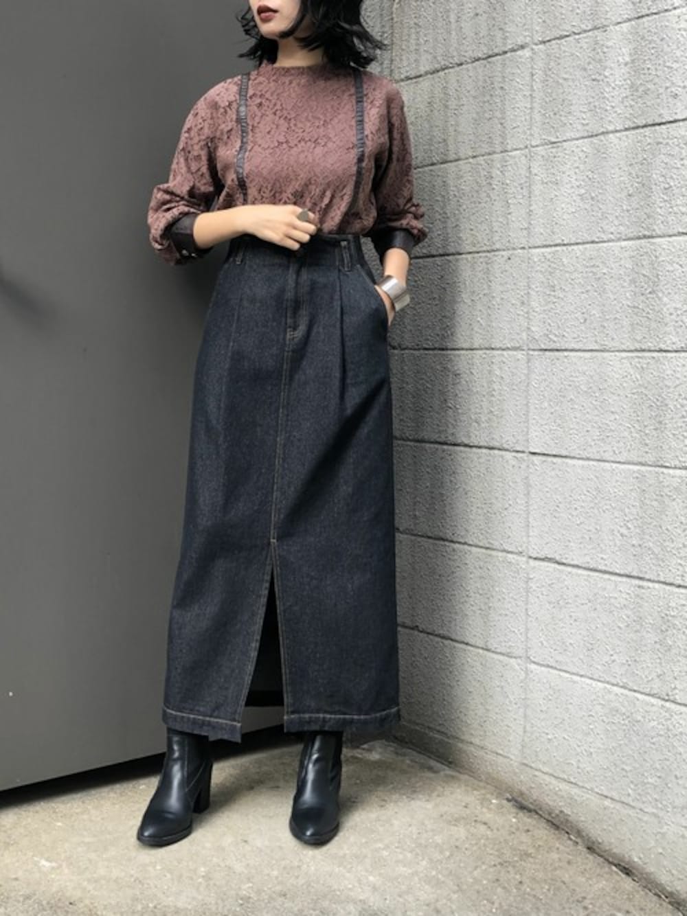 yui(&g'aime)(&g'aime)のシャツ/ブラウス「【&g'aime】レース×レザーブラウス」を使ったコーディネート