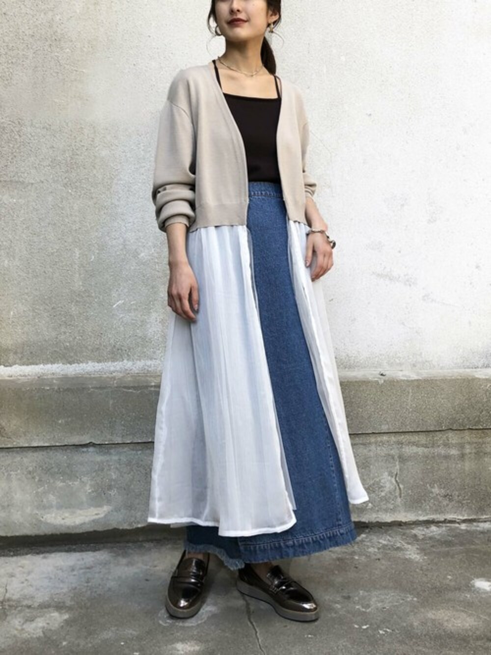 yui(&g'aime)(&g'aime)のカーディガン/ボレロ「【&g'aime】楊柳レイヤードロングカーディガン/シースルーカーディガン」を使ったコーディネート