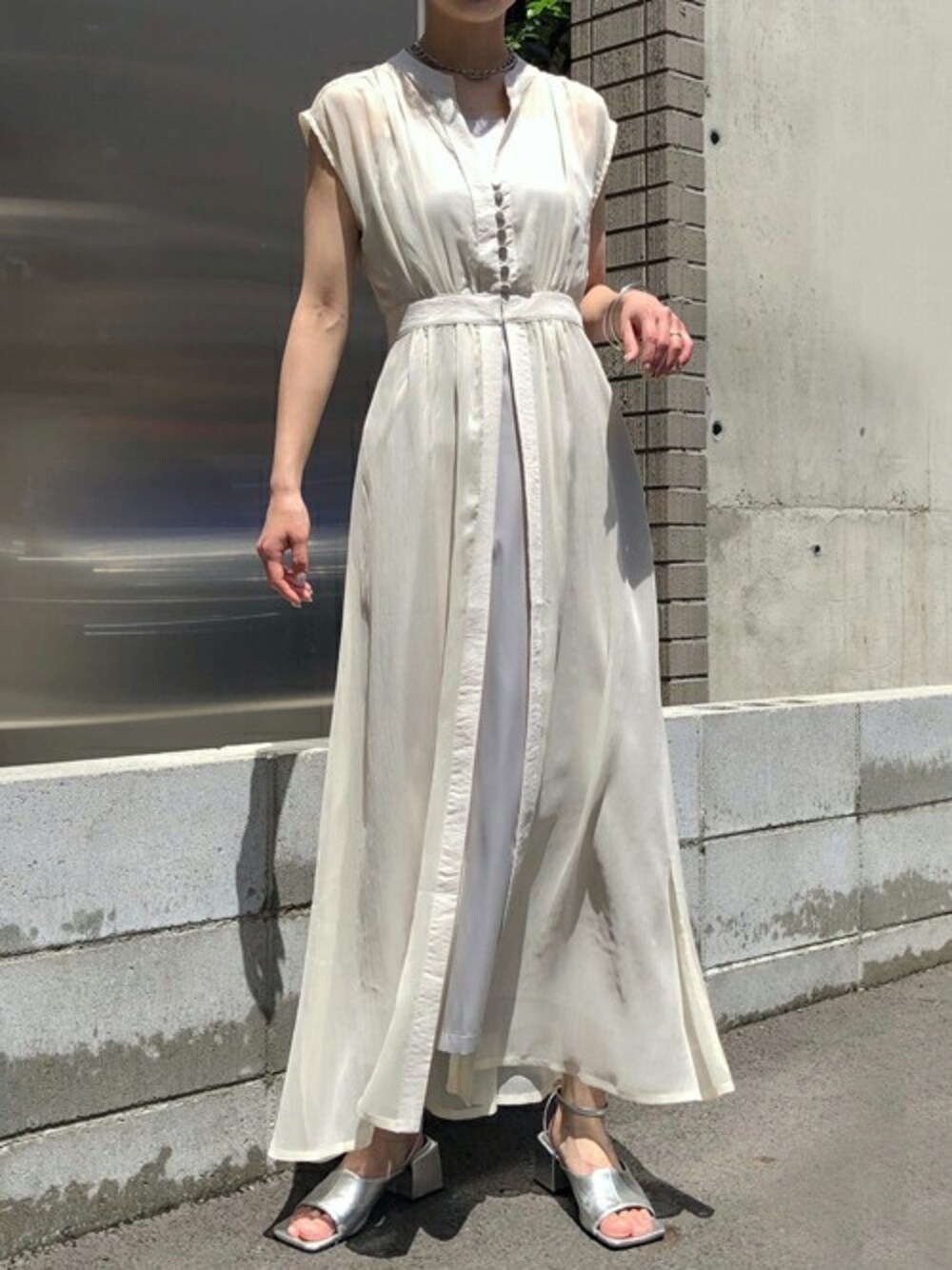 軽やかで大人な雰囲気のシースルーワンピース。 トレンドのシアー感に加え、さりげないVネックや フレンチスリーブなど細部にこだわり 女性らしさを追求し計算されたデザインです。 ボタンを開けて羽織としても着用できます◎