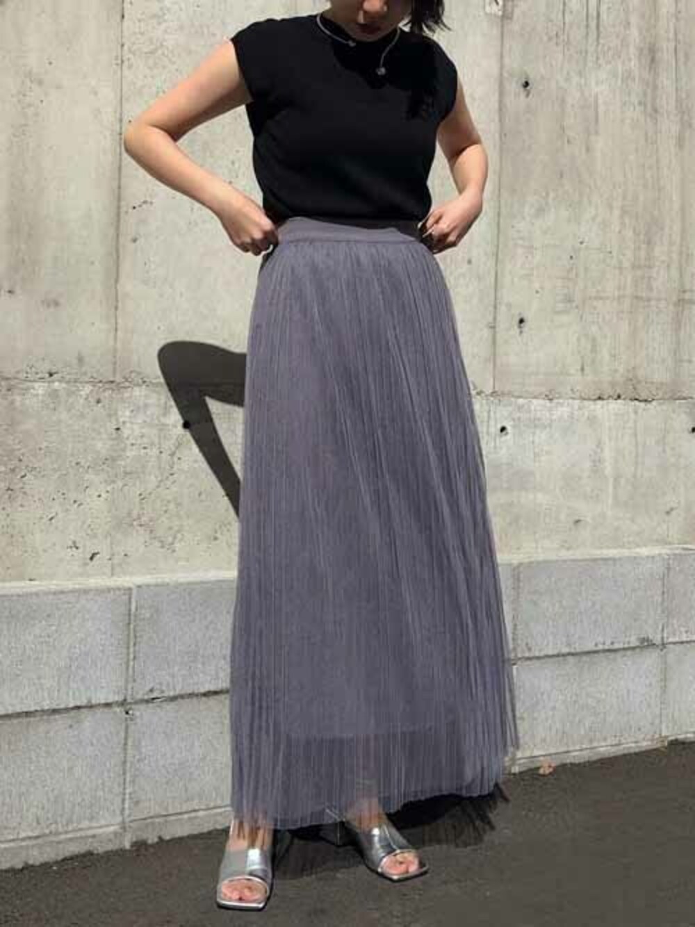 yui(&g'aime)(&g'aime)のニット/セーター「【&g'aime】ミラノリブフレンチスリーブニット」を使ったコーディネート