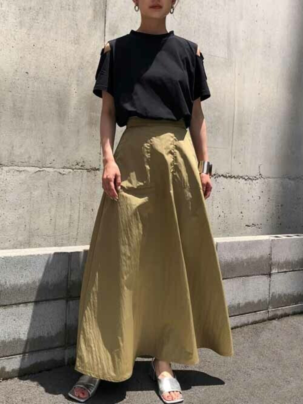 yui(&g'aime)(&g'aime)のTシャツ/カットソー「【&g’aime】ショルダースリットベルトTシャツ」を使ったコーディネート
