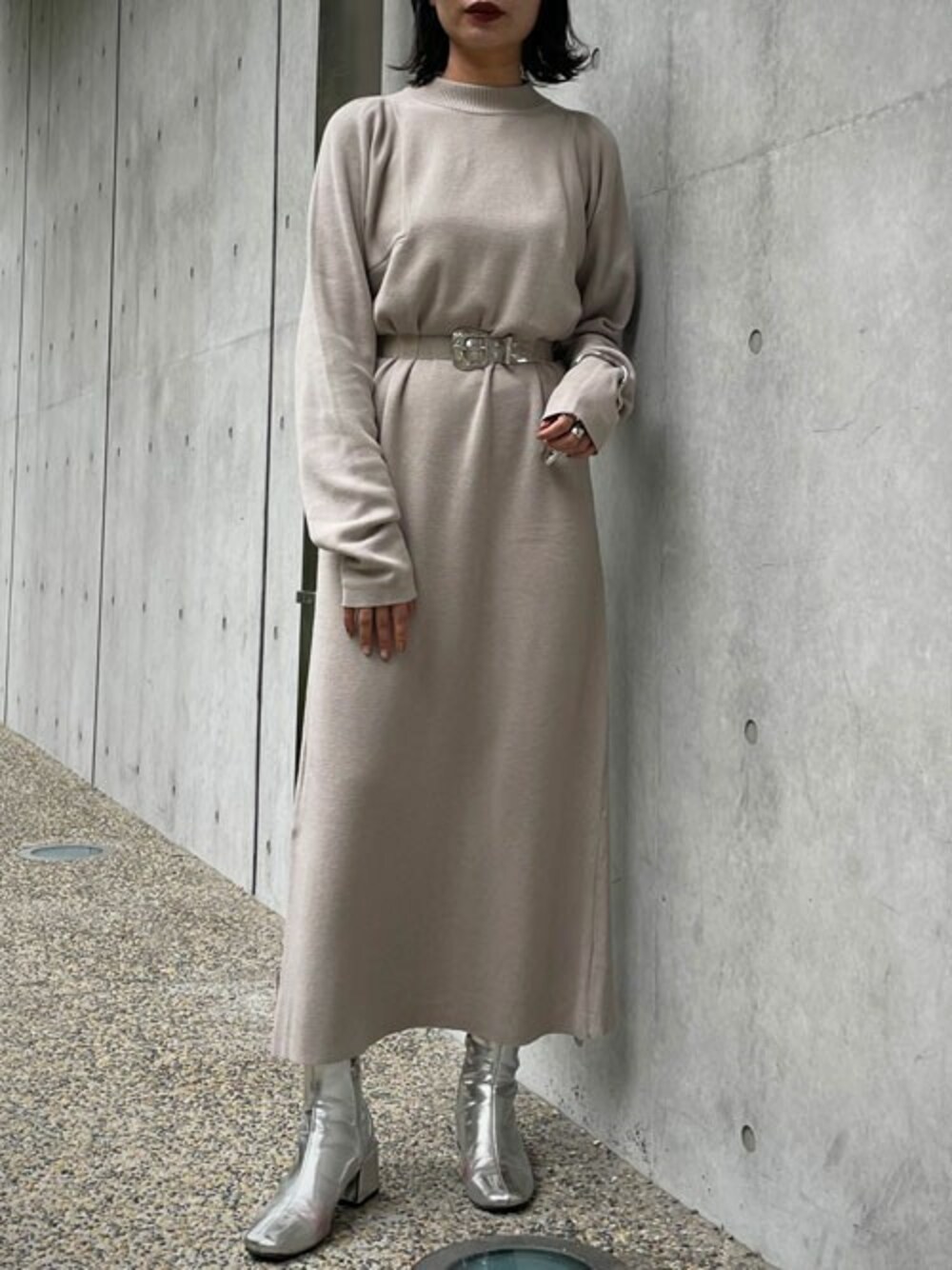 yui(&g'aime)(&g'aime)のワンピース「【&g’aime】ショルダータックニットワンピース」を使ったコーディネート