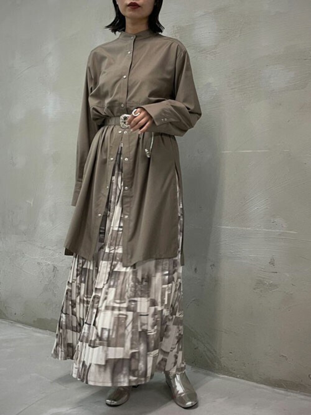 ルーズシルエットですが切り替え位置を ウエストよりも少し高く設定することで バランスの良いシルエットに。 ウエストマークをするとロングスカートと合わせても メリハリのあるスタイルに〇