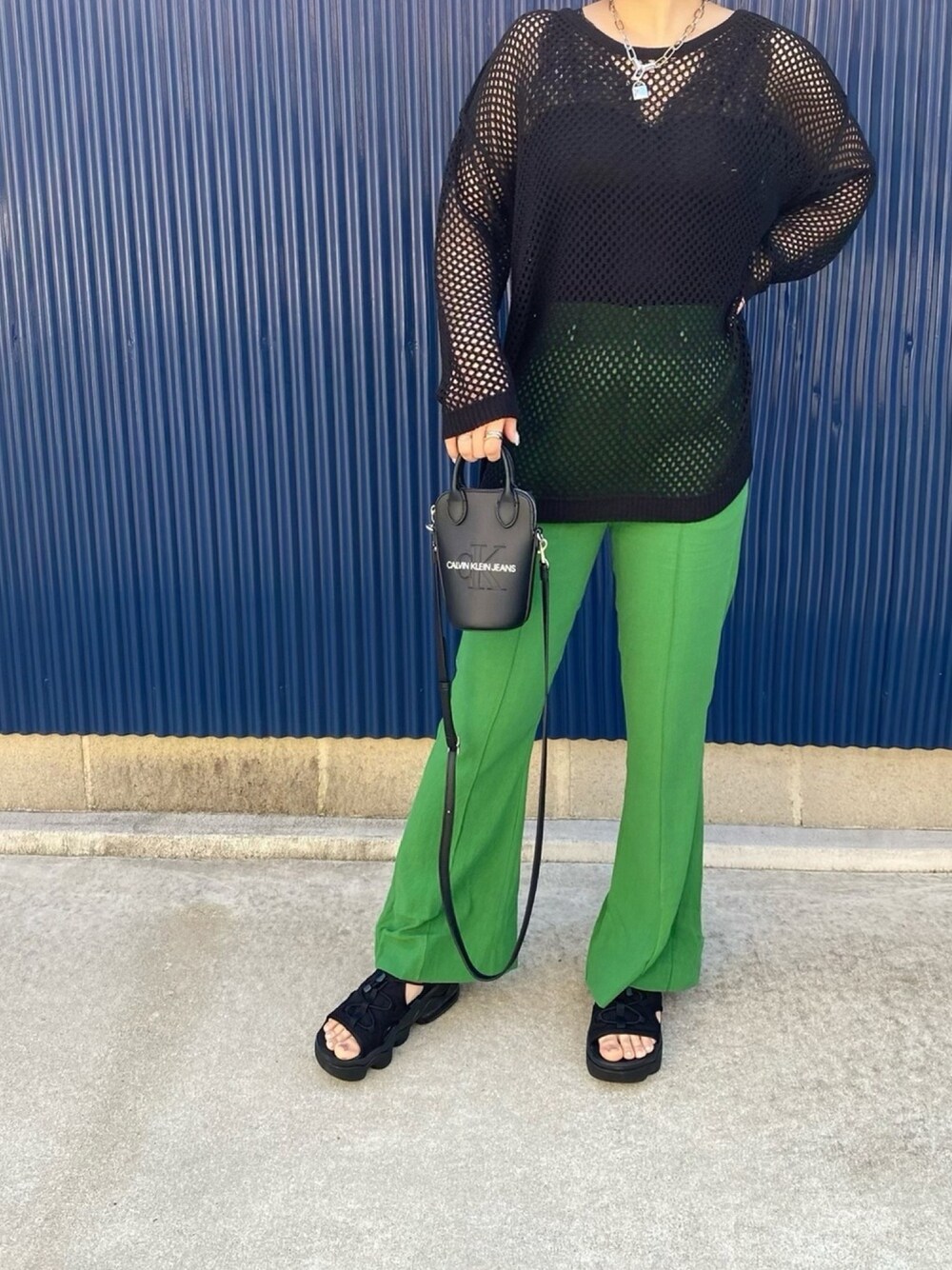 . . . ブラック×グリーンめっちゃ可愛くて好き ☻ カラーパンツの後にスリット入ってて、 履いた時のとろみ感が良き◎ . .