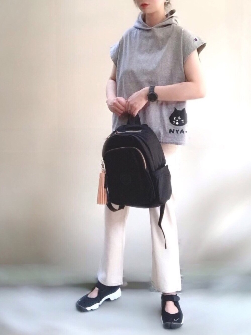 ange⭐︎のTシャツ/カットソー「にゃーとチャンピオンのノースリフードT」を使ったコーディネート