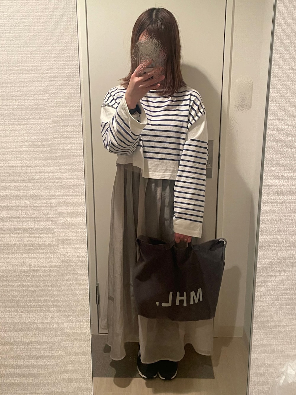 久しぶりの投稿📸 ボーダートップス×ジーンズに シアー素材のワンピース.。