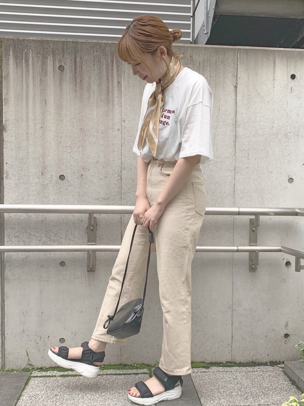 ホワイトコーデの差し色に🌼 スカーフ巻いていまっぽく!