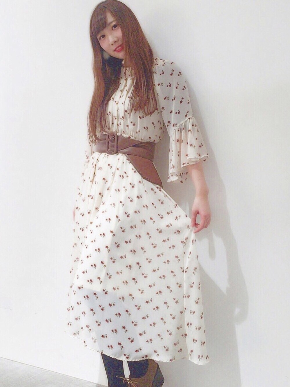 あたしが着ると着せられてる感満載ですが..可愛い花柄のワンピース👗🌷 . . お袖とかめっちゃ可愛い〜😭💕ヴィンテージ感のある服似合うようになりたい!これにレザージャケットとか合わせたい..🐰💭今流行りのサッシュベルトで締めてあげてキャスケットとか被ったら絶対可愛いなぁと思いながらも全然似合わないですね😂🙏( 笑 ) 甘辛にコーディネートとかしてあげると可愛いと思います☺️💓