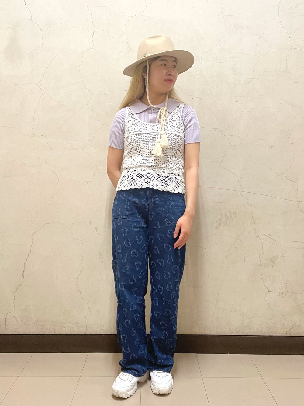 おはようございます☀️ ご覧いただきありがとうございます😊 90sの着こなし方もイメージして私なりの今らしさも加えてコーディネートしました! ハートのデニムが可愛いパンツ🤍 帽子はOVERRIDE。三つ編みタッセルがかわいいです💞リボンを変えることもできます!