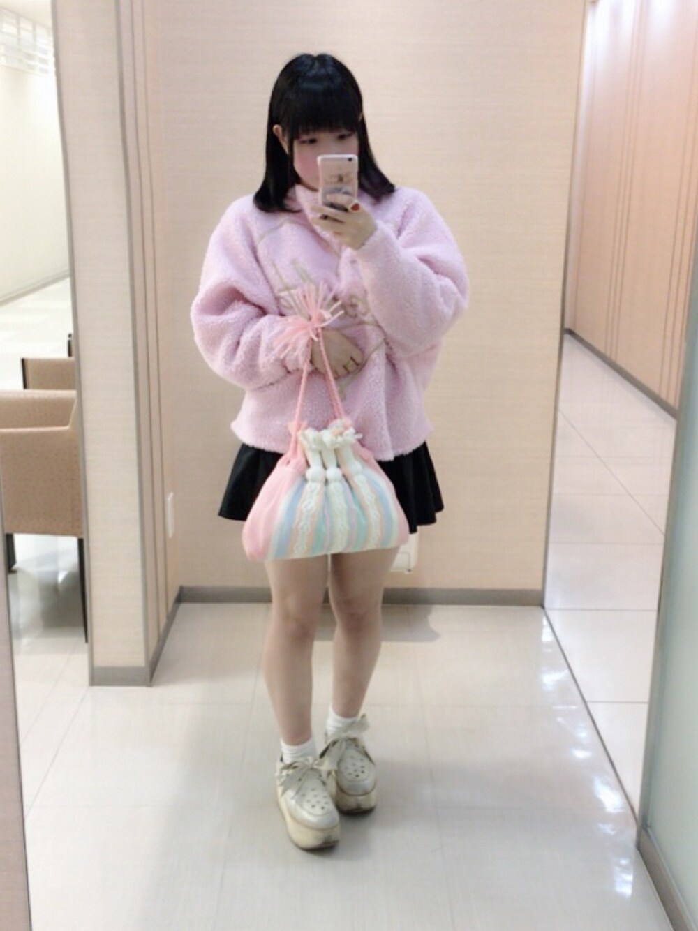 寒かったからフリースだしたよ☃️ ヴィンテージの巾着バッグが最高にかわいい、、、