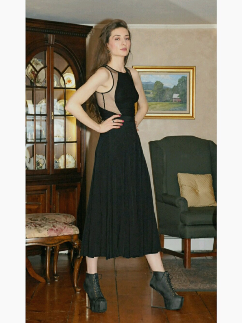 love the mix of soft and feminine skirt and top with edgy, chunky shoe