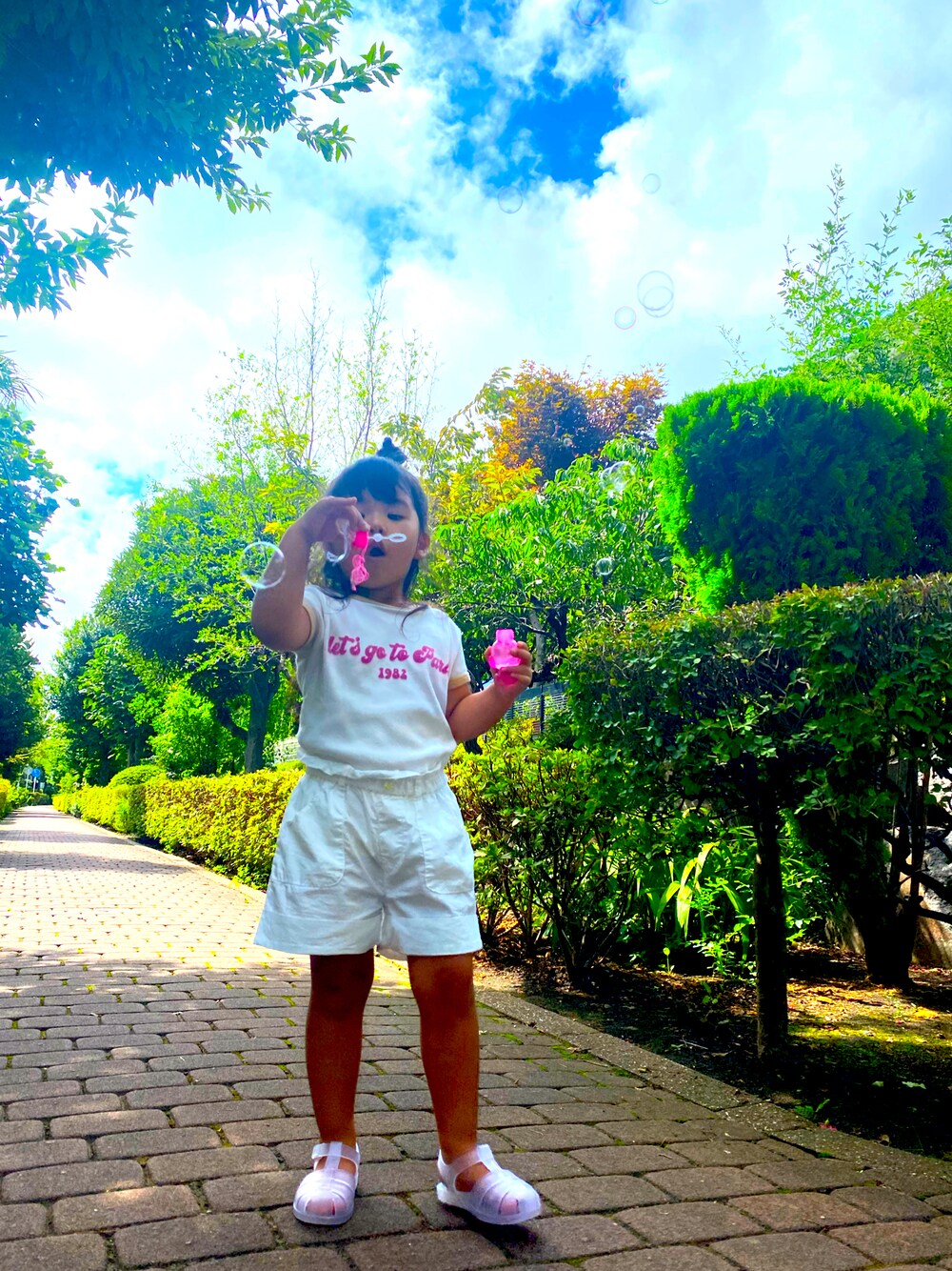 帰り道にくまさんシャボン玉🧸 また直ぐ天気崩れるかな🥺? 日本の夏は短い🇯🇵🏝☀️👙🐬