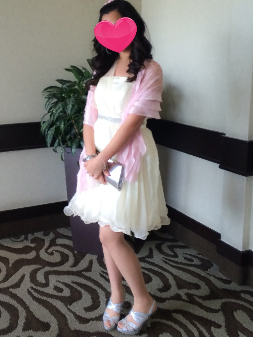 ウェディングパーティ DAY 2 昨日とは反対の膝までのドレス! 昨日のドレスはチョット大人風(?)、プリンセス風(?)、 けど今日は気分を変えてキュートなドレス\(//∇//)\ フワフワのイメージコーデにしてみました! どうかな? 英美より