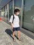 完全な夏スタイル デニム地のショーツで少し大人感 薄着の季節、食べ過ぎてお腹出ないようにしなければ笑
