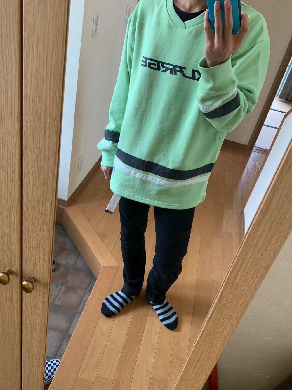 緑のスウェットがメインとなるファッションです💪 色は黒と白と緑の3色で抑えています! Vネックのスウェットが流行りそうな予感😏😏😏 靴は黒か白のスニーカーがいいと思います!!
