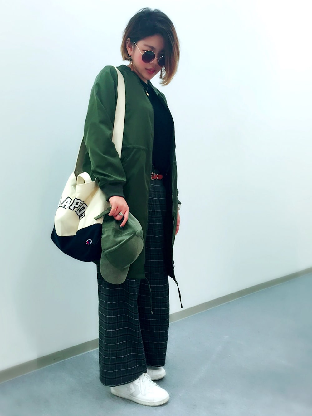 グレンチェックの着回しコーデ👖 グレンチェックはキレイめなイメージですが、このパンツは太身なので、合わせ方によってキレイめにもカジュアルにも着まわせる万能アイテムです👐!丈感も長すぎず短すぎず、台風が近付いてきてきっと大雨になるだろうけどこの丈感なら裾が濡れる事を心配しなくても大丈夫な長さ😂👌 今流行りのMA1はロングなデザイン❤️ロングが大好きな私は即購入😂生地も厚すぎず薄すぎず、秋にはヘビロテ確実なアイテムです👕! キャップはメンズ物ですが今流行りの形が浅め👒女の子が被っていてもなんの違和感もありません☺️しかも生地がコーデュロイ!持ってるだけで秋っぽくてこれまたヘビロテです😂
