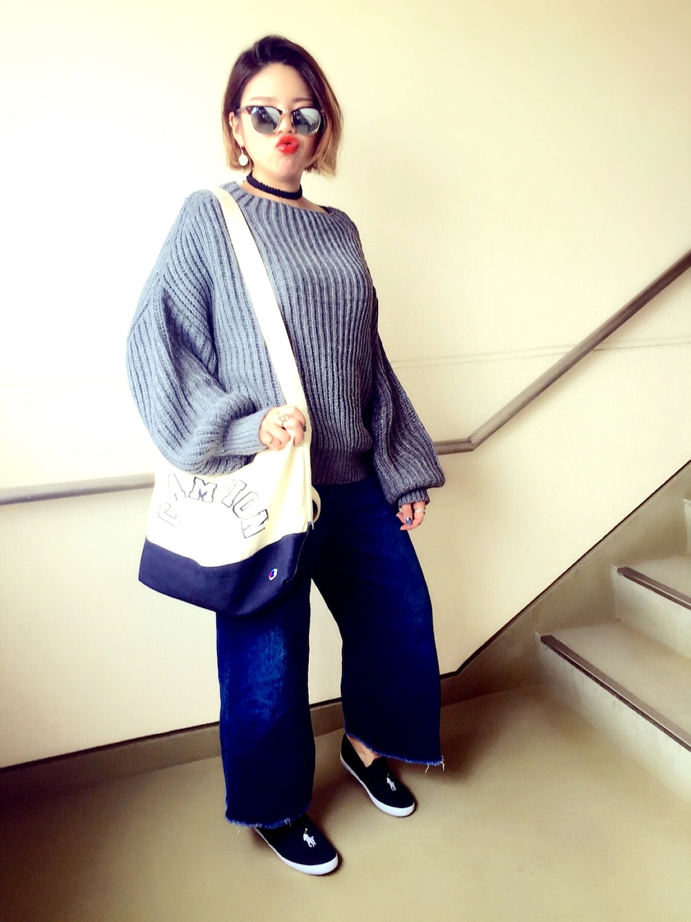 本日もお疲れ様でした🌛! 私はまだまだお休みを頂いており連休中です😪 今日は久しぶりに雲の隙間から太陽が見えました🌞❤️ここぞとばかりに洗濯物を干しまくり大満足。笑 でも気温が急に下がって寒い❄️今日はりんご狩りに行く予定だったので🍎カジュアルで動きやすいニット、ワイドデニム、スリッポンという ゆる×ゆるコーデでラフさを重視に選びました😂 園内を走り回ってりんご大量に狩りまくりました。笑 このニットは袖がめちゃくちゃゆったり作られててシルエットが本当に可愛いです😊❤️ワイドデニムはもはや休みの鉄板😂スリッポンは先日買い物した時に一目惚れしたラルフローレンのスリッポン👟とにかく歩きやすいしデザイン可愛いし何より安い。笑💰
