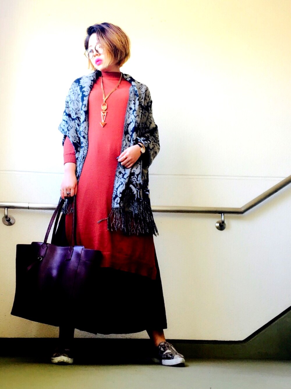 おはようございます🌞✨ 今日は暑いですねー💦まさかの26度😱🌀もう10月半ばなのに夏の気温に戻ってしまいましたね😂👏天気がいいのは嬉しい事です❤️でも久々に暑くて駅まで歩いてる中汗だくになってしまい醜い😂👏www さてまだまだニットフェア開催中です😘🎶ニット1点+その他商品お買い上げで10%OFF😇💓本日も店頭でお待ちしております😍✨ 本日のコーデはニットワンピ☺️秋にぴったりな深みオレンジで横はスリットが入っていて、生地も柔らかくすごく動きやすくて着やすいですよ😇🎶ニットワンピといえばそのまま1枚で着たりスキニーを合わせて着たりするのが定番ですが、横にスリットが入っているから下にガウチョやスカーチョを合わせても可愛い❤️写真見にくくて申し訳ないです、でも下にスカーチョ履いてます😊🎶 こちらも重宝しているスエード調のスカーチョ🎶カーキ色だからオレンジとの相性抜群です😊✨ まだまだ秋ファッション楽しみたいですね😆❤️ それでは今日も1日頑張りましょう😍👏✨