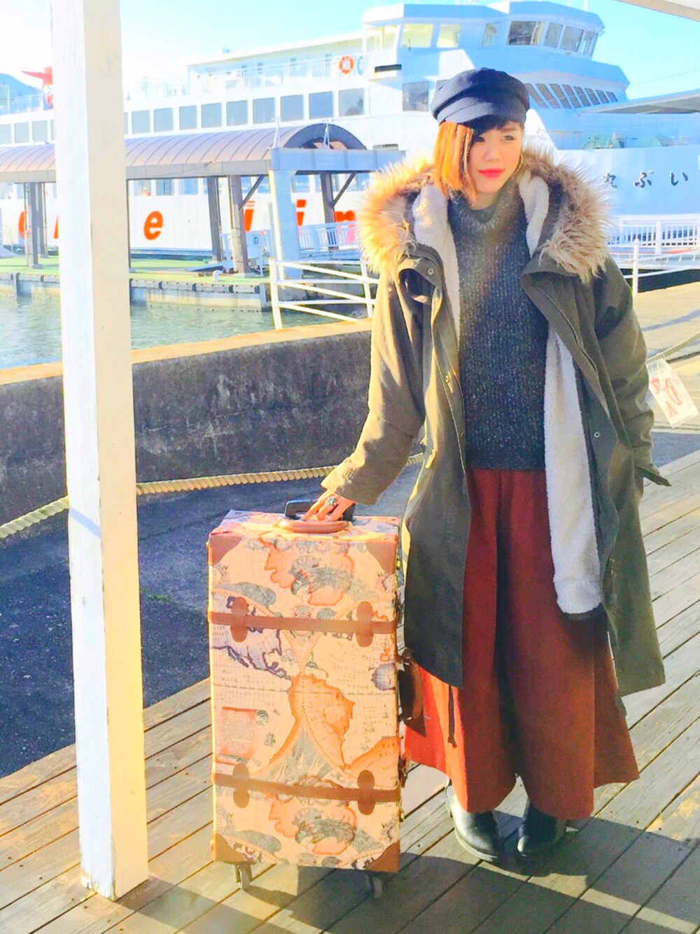 こんにちは🌇✨昨日から年末年始お休みを頂いております😊✨忙しい中本当に申し訳ない&ありがとうございます😭✨ ということで、母の実家が香川の小豆島なので、年越しは家族&おばあちゃんと一緒に小豆島で*\(^o^)/*❤️遠いからなかなか来れなくてごめんよおばあちゃん😭! 本日のコーデは暖かさ対策&楽チンコーデ!ニットはこの間紹介したボトルネックニット😊🎶パンツはゆったりシルエットのガウチョパンツ😊❤️この明るめオレンジブラウンの色味が大好きです!合わせやすいし綺麗な色😊💓 そしてビッグシルエットのモッズコートは中かボアになっていてとーっても暖かい😍✨ボアは取り外しもできるので春先や秋口などにも使えます😊🎶 これから新岡山港から背後に映ってるフェリーに乗って小豆島へ向かいます😊❤️香川は福島と違ってあったかーい😭✨