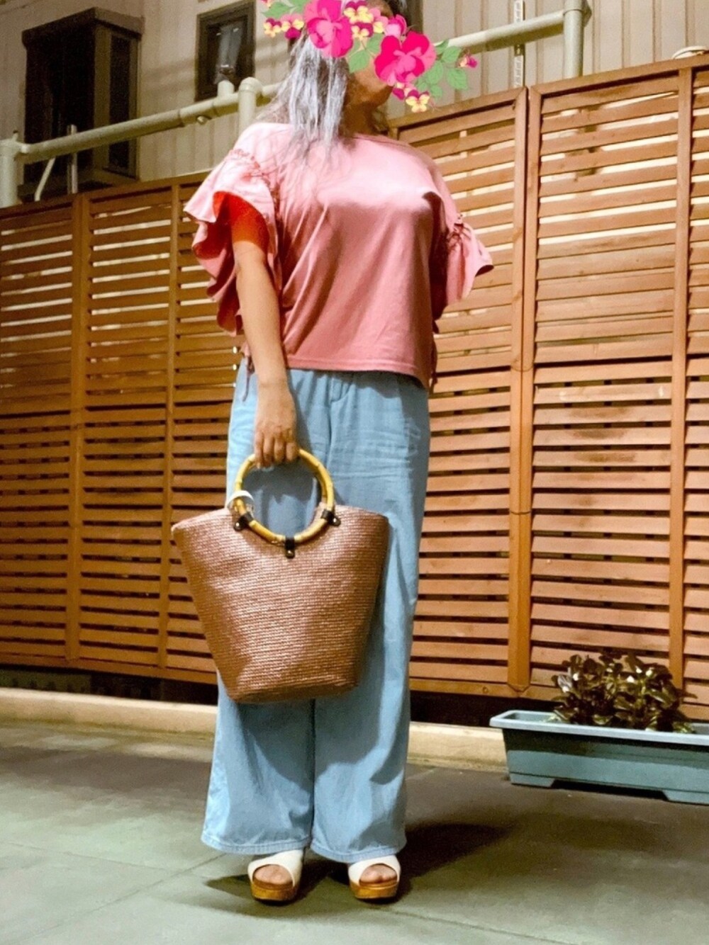 私的楽ちんコーデ🤗夏っぽ〜🌞🌴最近ちょっと寒いけどw かごバッグって夏気分になるよね👯♀️ こんな私のコーデに、いいねやセーブ♡コメにフォルダイン🗂フォローまで😳皆様ほんとにほんとにありがとうございます😭 小窓は川上未映子さんの「マリーの愛の証明」最近はもっぱらamazon reading📖