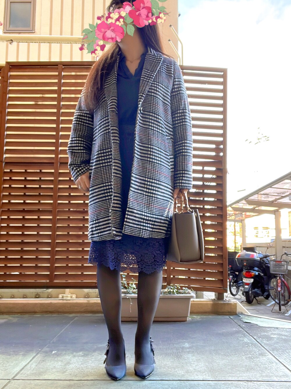 あっき✲のチェスターコート「グレンチェックチェスターコート」を使ったコーディネート